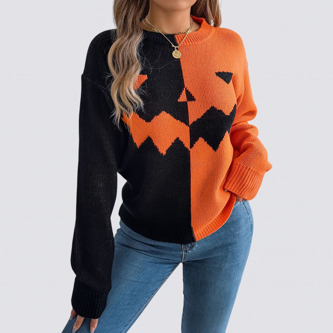 Φούτερ με αντίθεση χρώματος για το Χάλογουιν, Μοντέρνα Μάλλινα Τοπ Μακρυμάνικα για Γυναικεία Ρούχα