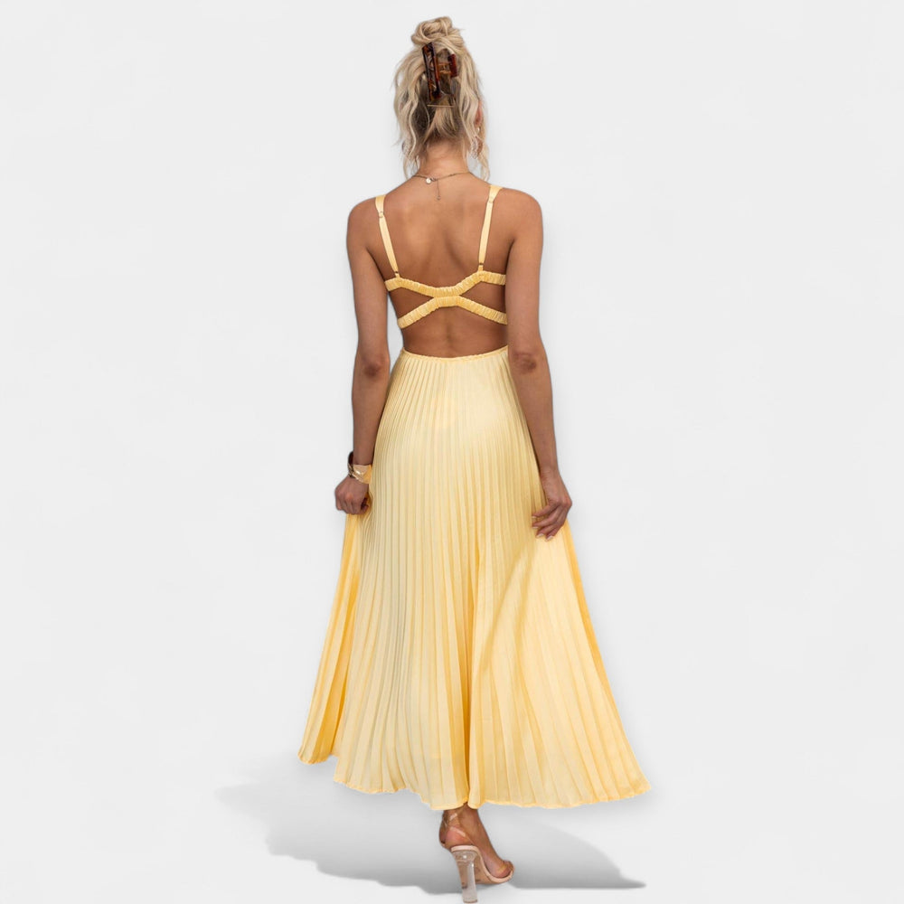 Ανοιχτή Πλάτη Κίτρινο Μάξι Φόρεμα